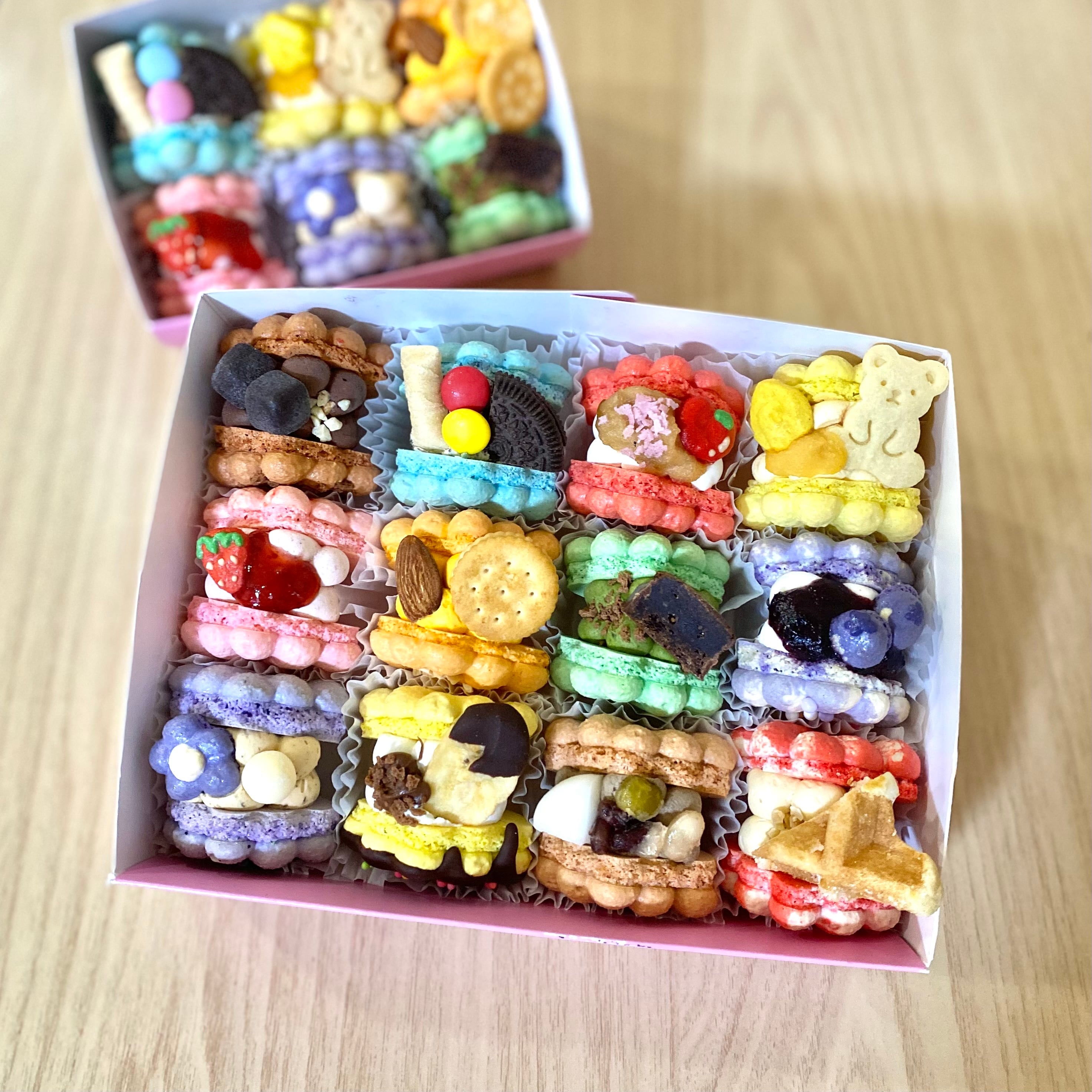 可愛いマカロンが12個入った詰め合わせボックス。