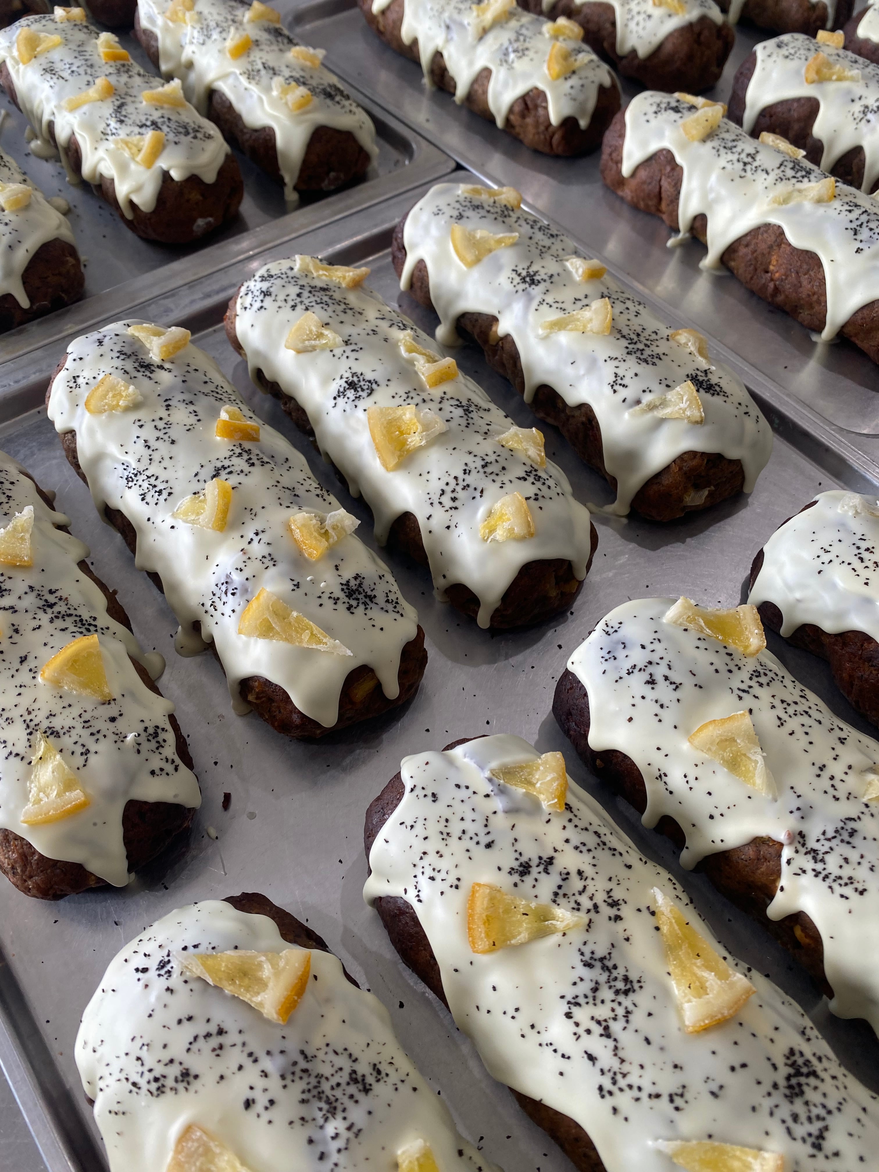 真ん中にはレモンの皮や果汁を使ったマジパンを包み込み、仕上げにホワイトチョコでコーティングしています‼︎